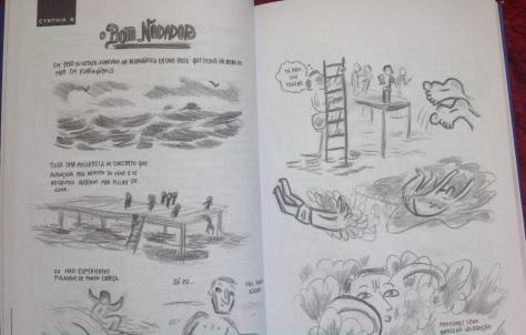 5) São 44 autores — não é múltiplo de 7 😦 — que me fazem pensar que esse livro, ao lado dos 3 volumes de MSP 50, seriam um bom apanhando de dois aspectos da cena brasileira de quadrinhos (aspectos que não são toda a cena, claro). Nomes que estão em ambos projetos, nomes que jamais passariam de um a outro e nomes que é uma pena que não estão lá ou cá.