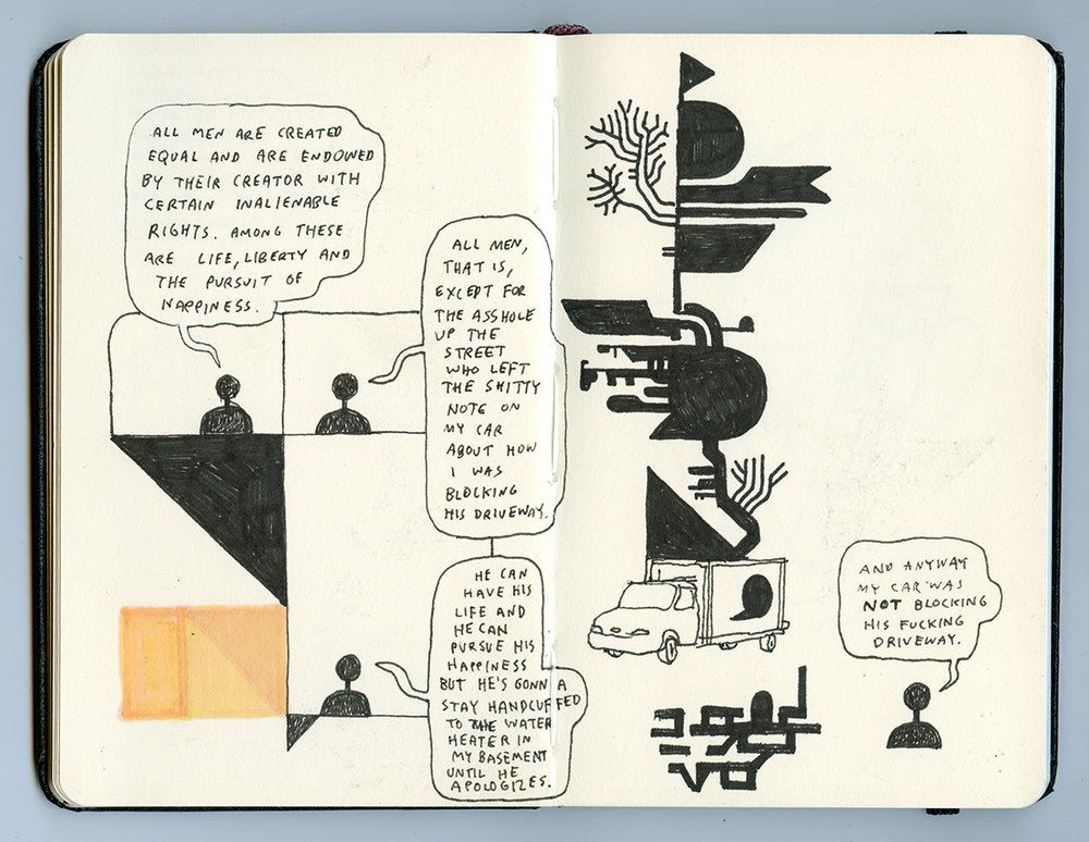 Seja como for, não haverá dúvida alguma que foi uma tentativa minha e do Warren Craghead III, tornada possível em primeiro lugar pela sua integração no Festival Internacional de Banda Desenhada da Amadora e, depois, na galeria Second Street de Charlottesville, em mostrar práticas que, sendo de banda desenhada, procuravam contornos bem distintos. O objectivo foi sempre sublinhar práticas não que viessem de fora da banda desenhada e que a trabalhassem como um objecto estranho ou distante – como faz, mesmo que brilhantemente, toda aquela linha de artistas de [Roy] Lichentenstein a Rivane Neuenschwander.