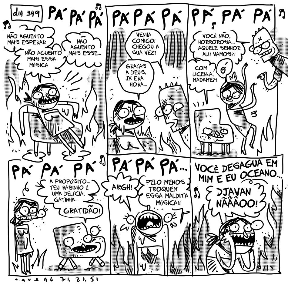 A minha escolha web desse ano foi Um ano inteiro do Galvão. A gente tinha acabado de gravar uma entrevista com ele, que estava empolgado com projetos. Mas foi aos poucos que vimos aparecer na TL esse quadrinho DIÁRIO. De novo, um quadrinho que parte de uma restrição, uma obrigação (o cotidiano, o não perder o pique aqui, a forma rápida e uma página). E tchan-ran! Ele conseguiu! E a história ainda por cima é bem legal, louca, do jeito que a gente gosta.