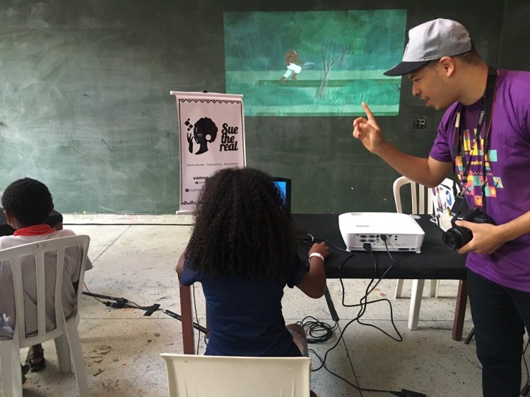 No fim da mesa, conheci o Urbano, do site RPG Vale, que me apresentou a Raquel Motta, a programadora de jogos que desenhou um game baseado em Angola Janga (Veneta, 2017) do Marcelo D’Salete. Enquanto falava com ela, já na sala de games, vi uma garota lutando para conseguir fazer o herói-escravizado fugir do engenho e chegar a Palmares. A tela parecia um gouache, com cores incríveis e um traço que nunca tinha visto num game.