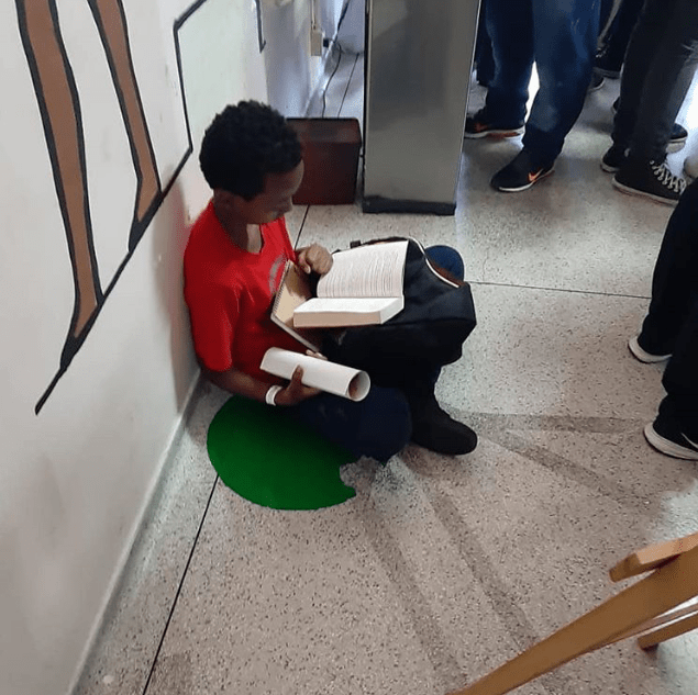 Já em casa, comecei a procurar no Instagram e no Facebook as pessoas que tinha conhecido pessoalmente ou que estavam relacionadas de algum modo ao evento: artistas, organizadores etc. Igor Nogueira, Andreza Delgado, Luíze Tavares, Osafi Motta, Gabrielly Oliveira, Ricardo Urbano, Raquel Motta, Nazura, Radish, FundãoRoupas e muitos outros de quem não me lembro agora. Ao começar a segui-los, fui percebendo quanta gente havia ligada ao movimento de ocupação das escolas estaduais, a diversos grupos do movimento negro e de vários tipos de ação política e social. Isso me deixou ainda mais intrigada quanto ao otimismo e às falas sem lamento de todos os envolvidos e ao fato de que, pela primeira vez em muito tempo, não ouvia durante um dia inteiro a palavra mais feia da atualidade: Bolsonaro.