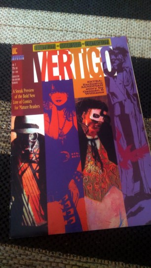 A Vertigo aparece mesmo em janeiro de 1993. Tenho ainda a edição especial de preview, que custou 75 cents, apresentando a proposta do selo e os novos lançamentos Death: the high cost of living #1, Sandman Mystery Theatre #1, Kid Eternity #1, Sebastian O #1, Black Orchid #1, Mercy e Enigma #1.