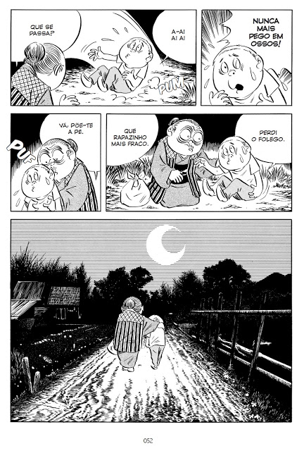A maior parte da história se passa com NonNonBa e Shigee às voltas com youkais. Duas explicações aqui: NonNonBa é um palavra da região onde se passa a história usada para designar mulheres mais velhas, muito dedicadas a religião (mas na prática da narrativa, ela funciona como uma vovozinha maneira); youkais são uma espécie de espíritos que rondam a vida das pessoas e agem no cotidiano.