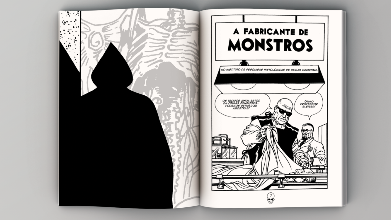 Quando apoiei o projeto no Catarse (aliás, a campanha do volume 2 está no ar), não sabia muito bem o que viria e o que chegou foi a história em quadrinhos de Necron, ser que é um monstro de Frankenstein, criado com o propósito de ser um dildo ambulante com carnes de mortos, animado por eletricidade. Pensando bem, acho que Necron tá mais pra um vibrador zumbi mesmo.