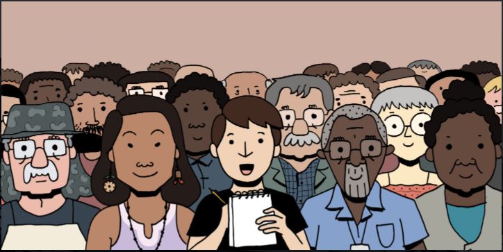 Uma das principais qualidade de Pablito como autor é a de, em um espaço muito reduzido de possibilidades formais, dar conta de caracterizar com maestria e leveza seus entrevistados sem se deixar cair em estereótipos, apresentando a nós um amplo leque de possibilidades de representação étnica, física, etária e de gênero que não se costuma ver desenvolvida de forma tão exemplar em outros artistas que flertam com a linha clara.