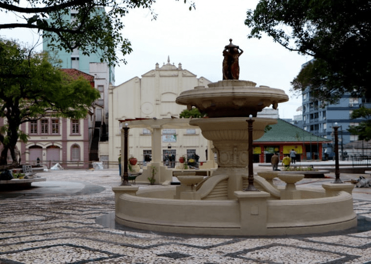 Entre os dias 23 de agosto e 7 de setembro de 2024, aconteceu a 51° Feira do Livro de Santa Maria, um dos maiores eventos literários da cidade. Eu fui à feira em diferentes ocasiões, por motivos diversos, e tive uma série de experiências interessantes. Ela aconteceu em frente ao Teatro 13 de Maio, perto do Calçadão, no limiar, na divisória, entre o Acampamento e a Rio Branco. Sei que, para aqueles que não moram em Santa Maria, isso não significa nada. Mas essa região, pra mim, sempre foi cercada de um certo misticismo urbano. Ela é um cruzamento entre dois pontos extremamente movimentados do centro da cidade. É uma praça, com uma fonte de verdade, que jorra água de verdade. Um espaço amplo e vasto de onde surge, no centro, glorioso e imponente, um coreto. É um anacronismo ambulante, estranhamente bem cuidado, que, se você seguir reto, você dá de cara com uma versão sulista da Rua do Ouvidor, só que mais ampla, com espaços para sentar e com prédios menores ao redor.