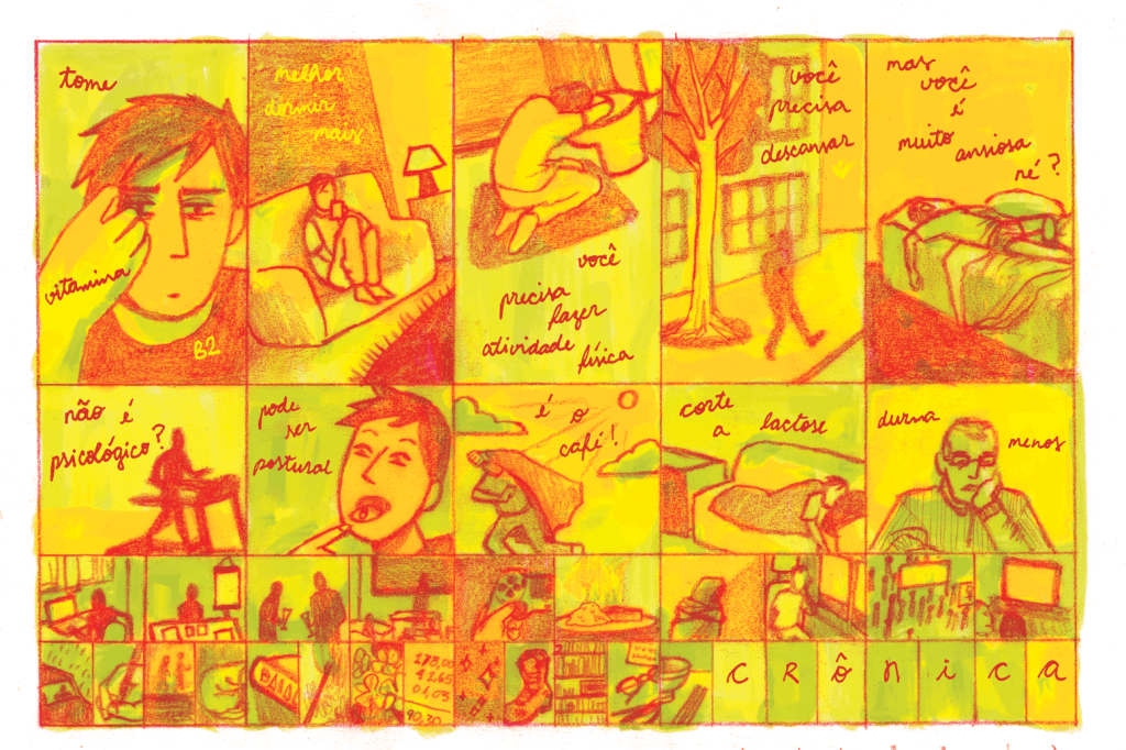 Falar de si pode ser uma boa terapia – muitas vezes, é bem nisso que consiste o processo terapêutico. Falar de si em quadrinhos pode ser muito importante para expor traumas, lidar com medos e ansiedades, pensar sobre o próprio comportamento. Mas nem sempre a escrita terapêutica é uma obra interessante. De novo, é possível se relacionar com obras ruins, tipo aqueles filmes jaguaras que a gente viu na infância e que nunca vai admitir que são umas nabas. É possível estabelecer relações com locais, com plantas, com sapatos, mas nem sempre isso vai ser mediado por um trabalho de linguagem em que aquilo ganhe força.