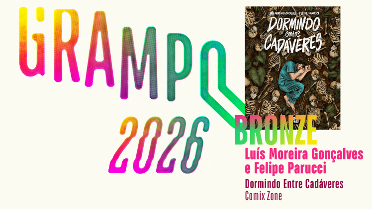 Outras HQs listadas pelos jurados do Prêmio Grampo 2026: Acender uma Fogueira (Pipoca e Nanquim), por Christophe Chabouté (tradução de Aline Zouvi); Amarelo Seletivo 2: Kanpai! (autoedição/Sapos Voadores), por Ricardo Tayra e Débora Kamogawa; Os Animais se movem (autoedição), por Iara Ribeiro; Autofagia: Ensaios (Risco Impresso), organizado por Guilherme E Silveira e Vizette Priscila Seidel; Bife de Unicórnio: Só O Filé (Comix Zone), por Gabriel Dantas; Bitch Planet – Planeta das Vagabundas: Sessão Tripla! (Conrad), por Kelly Sue DeConnick, Valentine De Landro e convidados (tradução de Dandara Palankof); Blackbird (DarkSide Books), por Pierre Maurel (tradução de Aline Zouvi); Bossa Nova – Música Popular em Quadrinhos (Brasa), organizada por Lobo; Centauros – Volume 3 (Conrad), por Ryo Sumiyoshi (tradução de Edward Kondo); Chico Bento: Viola (Panini), por Orlandeli; O Colecionador (Hipotética), por Djeison Hoerlle, Dieferson Trindade e Juliano Dalbem; Como Fazer Amigos e Enfrentar Vampiros (JBC/Companhia das Letras), por Eric Peleias e Gustavo Borges; O Corpo de Cristo (Comix Zone), por Bea Lema (tradução de Fernando Paz); Curiosidade (Veneta), por Cecilia Capuana (tradução de Márcio Rodrigues); Daruma: Identidade (Pitaya/Harper Collins Brasil), por Monge Han; De mão em mão (Bebel Books/Z Edições), por João Pinheiro e Allan Sieber; Do que você tem medo? (autoedição), por Jéssica Goes; O Dragão de Aço (Mau Gosto Corp.), por Fernando Athayde; Eu Sou o Seu Silêncio (Pipoca e Nanquim), por Jordi Lafebre (tradução de Fernando Paz); O Enigma do Polvo Tarântula (Mau Gosto), por Koostella; Epilético (Darkside Books), por David B. (tradução de Aline Zouvi); O Espelho dos Sonhos e outras histórias (Risco Editora), por Paul Kirchner (tradução de Érico Assis); Estive em Horroroso e Lembrei de Você (Quadrinhos na Cia/Companhia das Letras), por Rafael Sica; Fanfiction (webcomic), por Roberta Sofer; Fanfiction Vol.2: Amizades Sinceras (autoedição), por Robert Sofer; Fóssil dos Sonhos: Todos os Contos de Satoshi Kon (Pipoca & Nanquim), por Satoshi Kon (tradução de Drik Sada); Garota à Beira-Mar (JBC/Companhia das Letras), por Inio Asano (tradução de Caio Pacheco); Gibi de Menininha 4 – Damas da Noite (Zarabatana Books), por Camila Suzuki, Clarice França, Dane Taranha, Fabiana Signorini, Flávia Gasi, Germana Viana, Kátia Schittine, Mari Santos, Renata CB Lzz e Roberta Cirne; Gibi Proibido (CAQ – Coletivo Alvoradense de Quadrinhos/Márcio Sno Produções), por Bira Dantas, Germana Viana, Kiko Garcia, Kris Zullo e Laudo; God is a Lilly of the Valley (MMarte), por Luiz Gê; Guerra em Gaza (Companhia das Letras), por Joe Sacco (tradução de Érico Assis); Happy Endings (Risco Editora), por Lucie Bryon (tradução de Érico Assis); Helen de Wyndhorn (Suma/Companhia das Letras), por Tom King e Bilquis Evely (tradução de Angélica Andrade); Heloquência (Conrad), por Helô D’Angelo; Hoje é um belo dia para matar (DarkSide Books), por Patrick Horvath (tradução de Érico Assis); Hoka Hey! (Taverna do Rei), por Neyef (tradução de Fernando Paz); O Homem que Sabia Javanês (Via Lúdica), por Davi Calil; A Hora da Estrela (Rocco), por Leticia Wierzchowsk e Line Lenos; Ifaradá (Trem Fantasma), por Alexander Izquierdo (tradução de Mario Luiz C. Barroso, Sergio Barreto e Marcello Fontana); Ikkyu: Vento (Veneta), por Hisashi Sakagushi (tradução de Drik Sada); Incidente em Antares (Companhia das Letras), por Rafael Scavone, Olavo Costa e Mariane Gusmão; Iraúna do Olhar Ambar Vol. 1 (JBC/Companhia das Letras), por Pieri; Kabuki: Verão, Outono, Inverno, Primavera (Pipoca & Nanquim), por Tiago Minamisawa e Guilherme Petreca; Liget #6 (Selo Harvi), por Marcos KZ; O Livro de Ofélia (Veneta), por Gilbert Hernandez (tradução de Cris Siqueira e Alexandre Barbosa de Souza); Max Medroso (VR Editora), por André Catarinacho e Felipe Nunes; Minotauro e outras histórias (Conrad), por Laerte; Na Prisão (Comix Zone), por Kazuichi Hanawa (tradução de Drik Sada); Nejishiki (Veneta), por Yoshiharu Tsuge (tradução de Luis Libaneo); Nina e o Passarinho (webcomic), por Daniele Santos Barbosa; Nodame Cantabile #1 (MPEG), por Tomoko Ninomiya (tradução de Erika Yuriko Tanaka); Ônibus 2 (Risco Editora), por Paul Kirchner (tradução de Érico Assis); O Oposto do Robô (MMarte), por Max Andrade; Pesadelos Completos (Darkside Books), por Hideshi Hino (tradução de Ayumi Anraku); Petricor (Devir), por Jack Azulita; Por uma Fração de Segundo: A vida movimentada de Eadweard Muybridge (Comix Zone), por Guy Delisle (tradução de Flávia Yacubian); Quadrinhos (autoedição), por Julia Chorona; Quase Tudo São Flores (Corad), por Karipola; Querido Gineco – Relatos ilustrados de pessoas reais, com e sem vulva (autoedição), por LittleGoat; Redux: Zero e Um (autoedição), por Toni Le Fou; Reflexos do mundo: Trabalhar e Viver (Nemo), por Fabien Toulmé (tradução de Felipe Monte); Robô Esmaga #2 (autoedição), por Alexandre S. Lourenço; Samba de roda (Veneta), por Juliana Barreto Farias e Gabriel Gabiru; Sertão: Agroecologia, Resistência e Fé (Nemo), por Sébastien Carcelle e Laurent Houssin (tradução de Renata Silveira); Shigurui (Pipoca & Nanquim), por Takayuki Yamaguchi (tradução de Camilla Midori); Shmoo (Veneta), por Al Capp (tradução de Alexandre Barbosa de Souza); Terror Especial: Cida Godoy (Franco de Rosa Editor), por Cida Godoy; Thorgal: Série Clássica Vol. 1 (Pipoca e Nanquim), por Jean van Hamme e Grzegorz Rosinski (tradução de Rodrigo Lobo); Tia! Tia! Tia! (autoedição), por Julia Chorona; Um Dia em Kara Tepe (Conrad), por Mei-Li Nieuwland (tradução de Cassius Medauar); Uma moeda ou um beijo (Conrad), por Leonardo Melo e André Caliman; Uma Tigela de Sangue e Ossos (autoedição), por Yoshi Itice; Ugrito #41: Risada Artificial (Ugra Press), por Batista; Vicente – Lua Cheia (Brasa), por Pablo Marquinho e Álvaro Maia; V