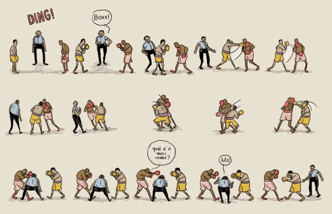 O laboratório formal de Alexandre Lourenço está disponível aos olhos de modo ligeiro e inconteste. Abra seus olhos e veja. Seja na progressão/regressão exponencial de quadrinhos em “Saudações vascaínas”, seja nos diversos tempos na mesma página de “Durma bem, monstro” (ambas histórias dessa coletânea lançada pela Conrad em 2025, com outras três: “Boxe” [talvez minha favorita], “Raio Rubro” e “Notas (ou algumas de suas verdades ainda moram em mim)”). O trabalho dele é reconhecido pela invenção.